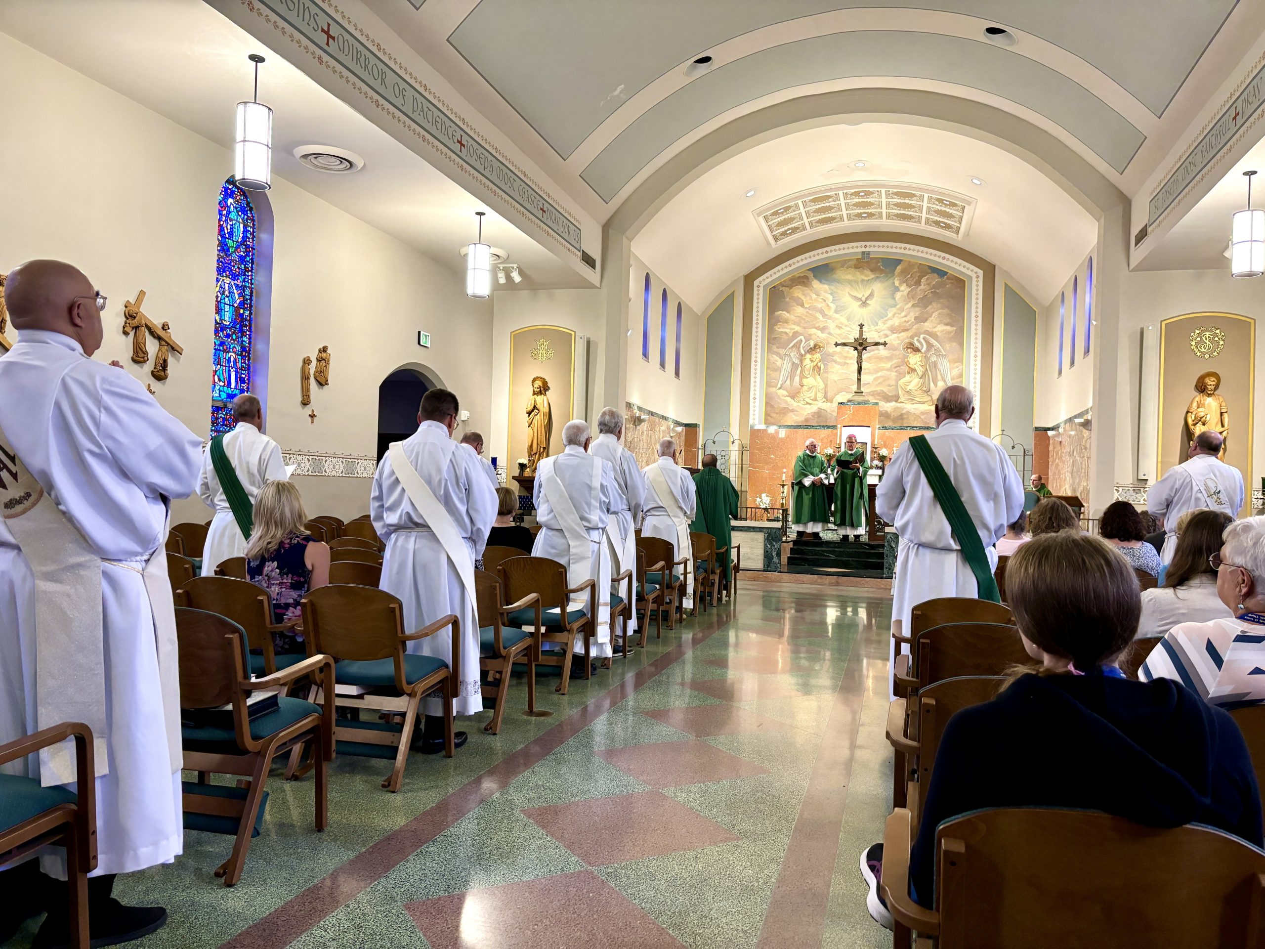In the chapel Saturday night, Bishop Timothy Doherty celebrated Mass and led the deacons in renewing the promises they made at ordination.