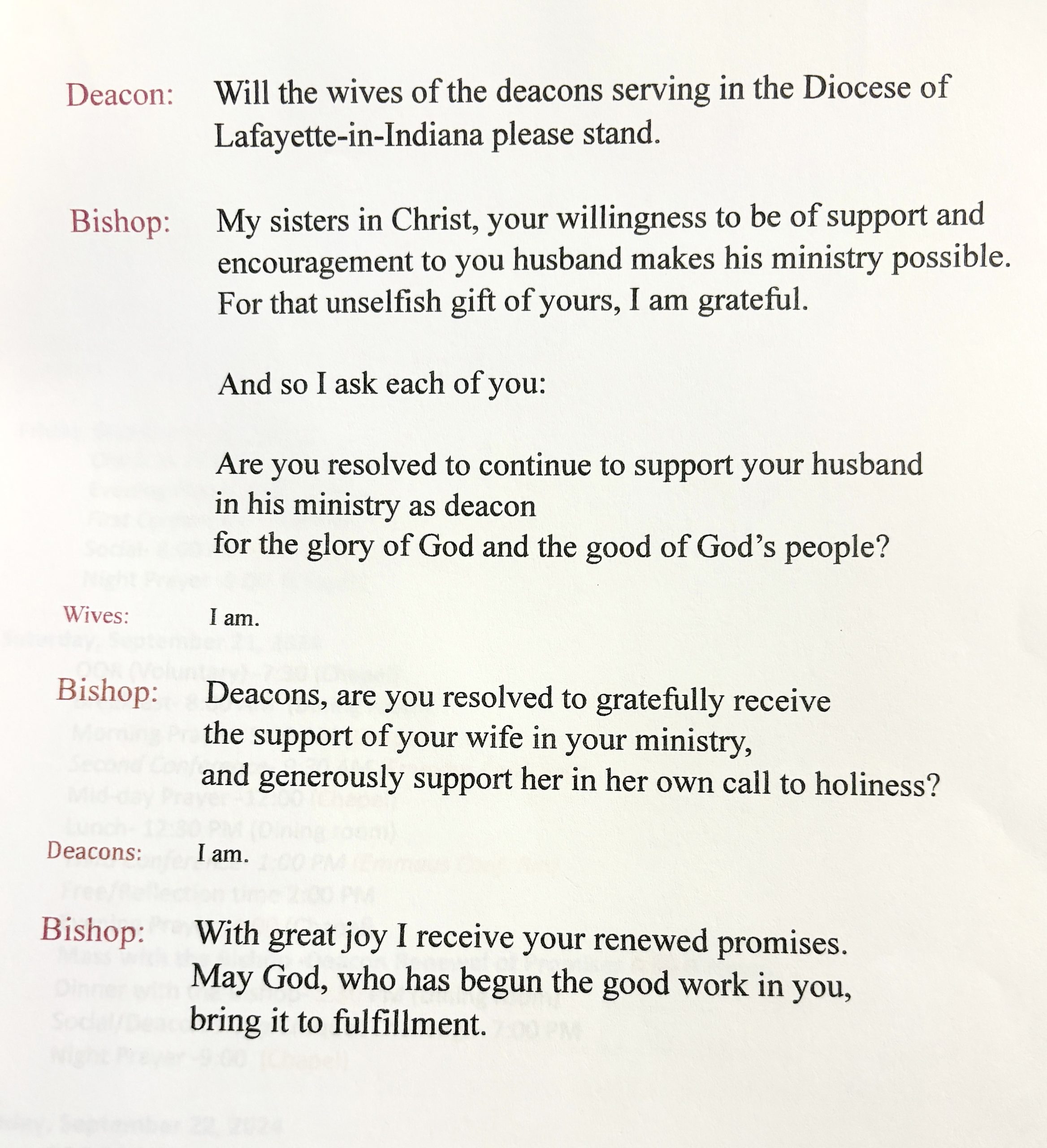 That included something special: promises by the wives “to continue to support your husband in his ministry as deacon for the glory of God and the good of God’s people.”