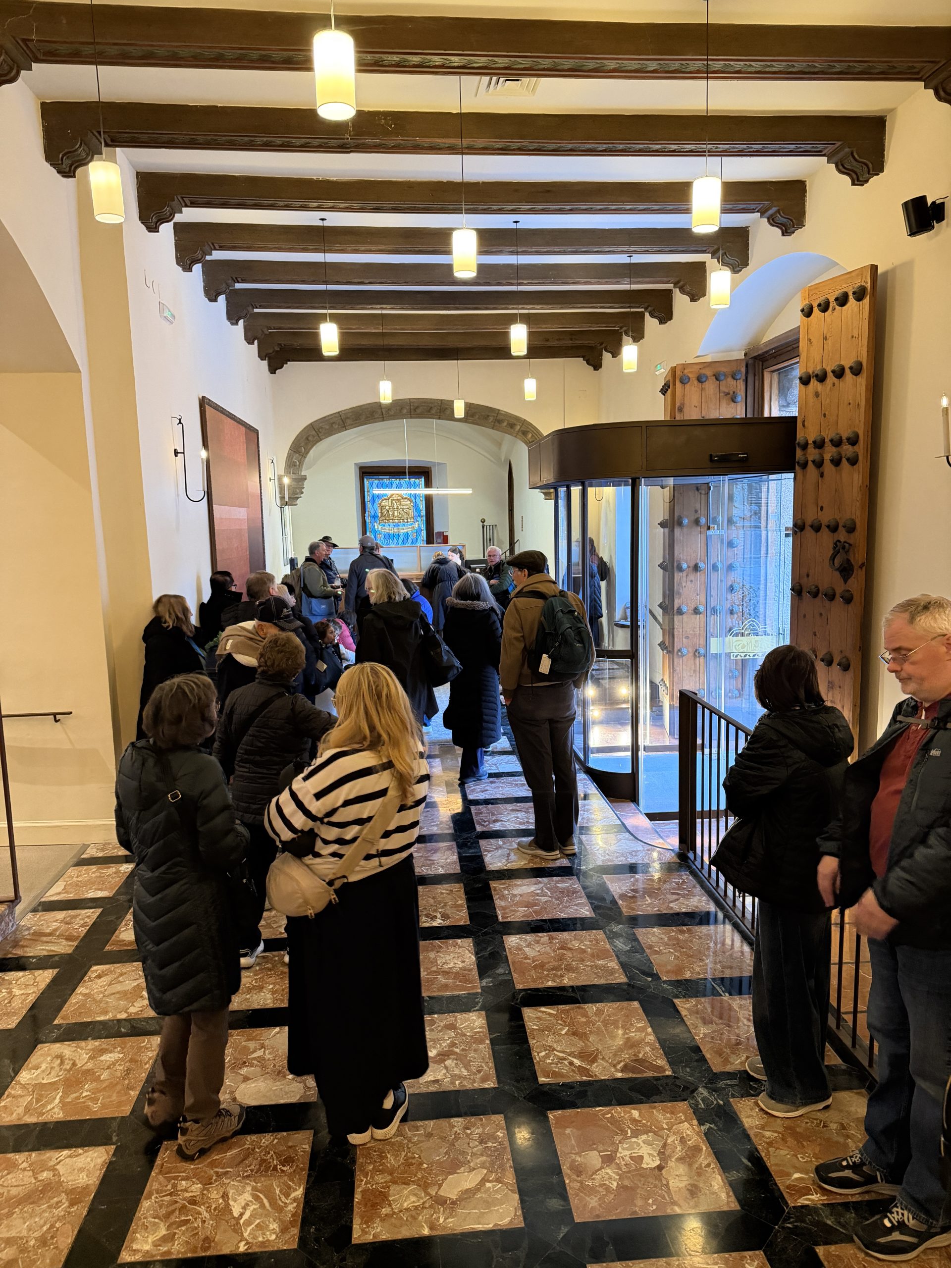 Allow me to introduce you to this gentleman: Jose, from my parish in Florida. He decided to undertake this trek at the tender age of 83. I was impressed by his stamina and determination, even using a cane for help. But it’s a big risk. This trip isn’t easy, even for people a lot younger — like many of these pilgrimages, there’s a lot of walking, a lot of cobblestone streets, a lot of steep inclines and stairs. You spend a significant amount of time on your feet. Just getting on and off the bus can be a challenge. Add to that the steep, winding staircases in ancient churches (often stepping up and down slippery marble) and the challenges can be daunting. We’re typically logging up to 15,000 steps a day.