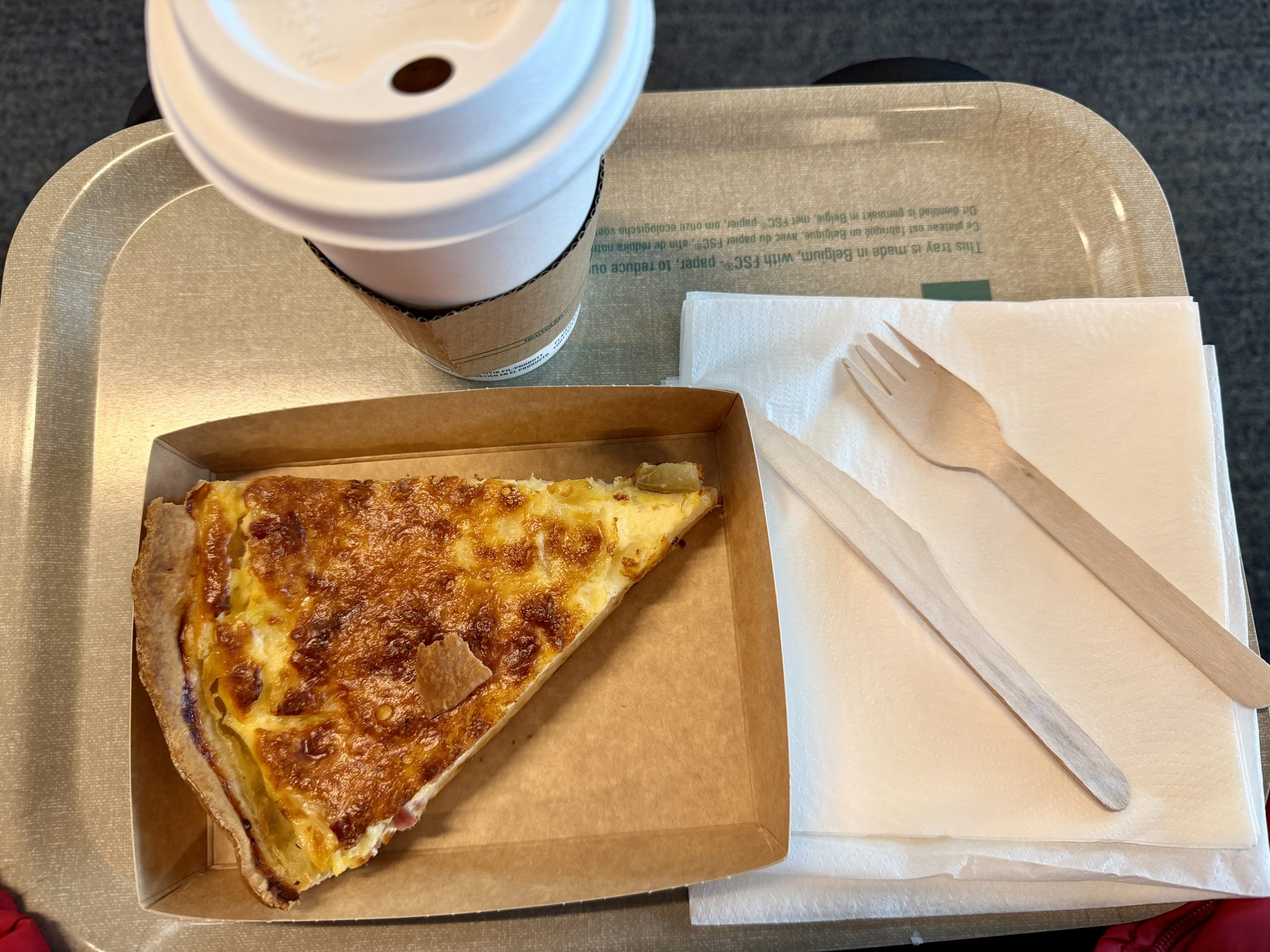 Siobhain and I killed some time by browsing the stores and grabbing breakfast: quiche!
