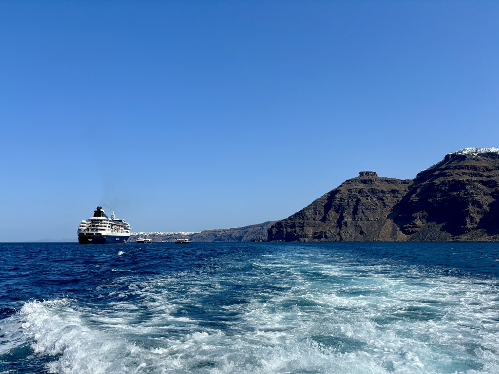 For now, we continue our glide across the sea on the good ship Gemini, waving farewell to Santorini and turning toward our next stop, the Turkish port of Kusadasi.