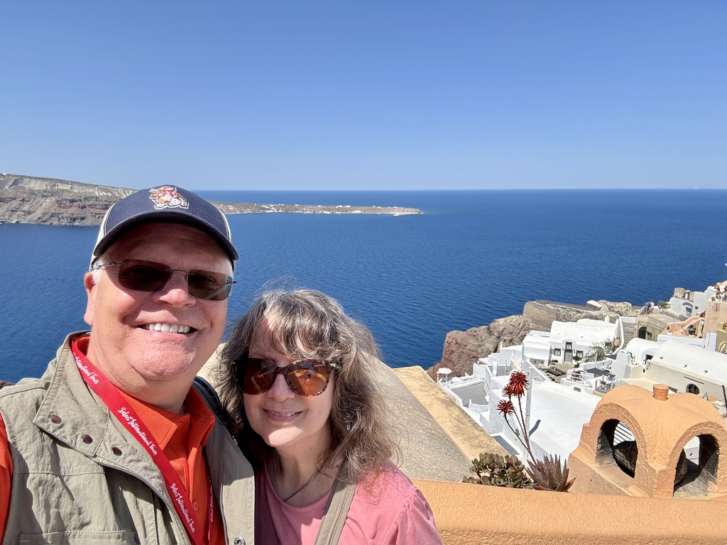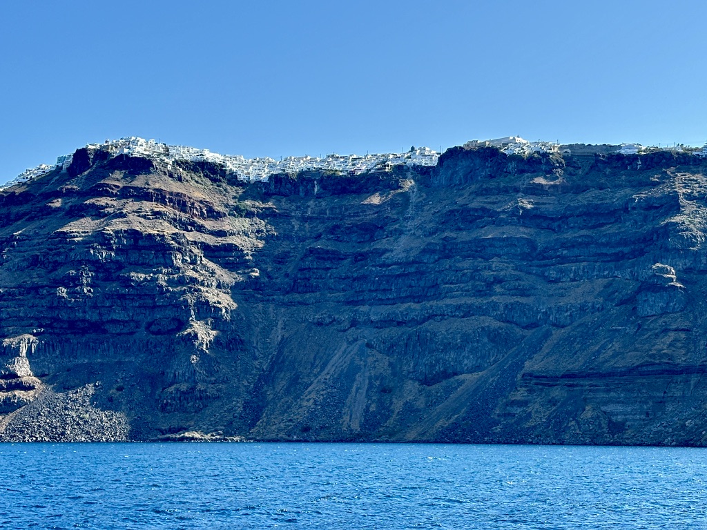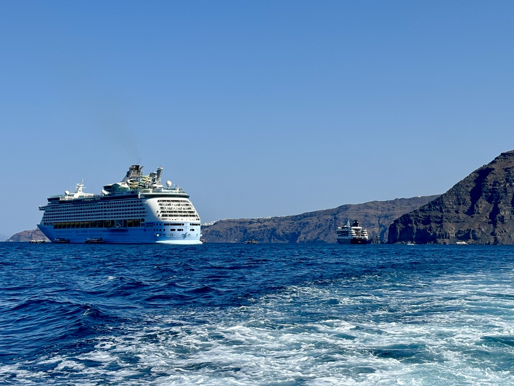 Saturday, we were up early for breakfast — another buffet, with everything from Greek pastries to American-style pancakes, scrambled eggs and every kind of vegetable you can imagine. We then gathered in one of the lounges to connect with our tour manager, Kerri, who passed out our tickets and led us down to the tenders to enjoy a short ferry ride to the tourist mecca, Santorini.