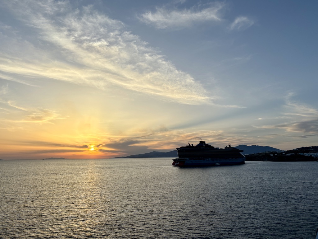 It was a perfect end to our first day at sea. Many in our party took advantage of an evening excursion to Mykonos, to shop and drink in the atmosphere (or other things). We opted to call it a day and stay on the ship.