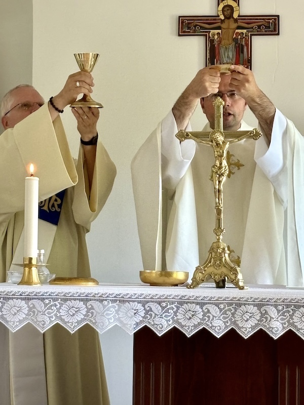 After a quick walk through the house — a visit doesn’t take more than a few minutes — we went to a small chapel next door for daily Mass. Again, this was an extraordinary privilege. Most public Masses are celebrated outdoors, at a large altar under a canopy that can accommodate hundreds. Our tour manager was able to secure us this private chapel.