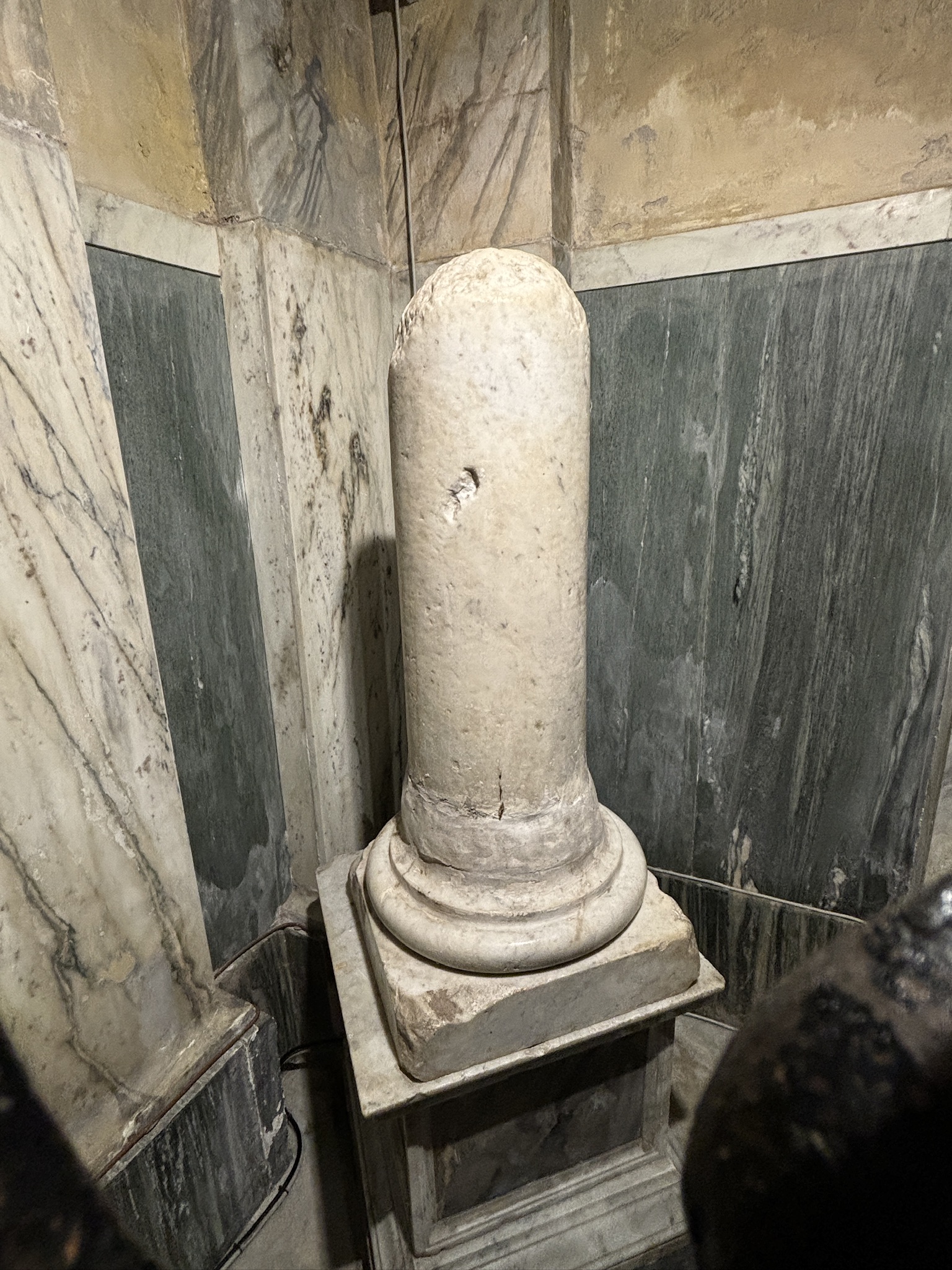 We took a brief tour through a church that honors Paul’s martyrdom, with many depictions of his death and, in one corner, the stone pillar to which he was chained when he was killed.