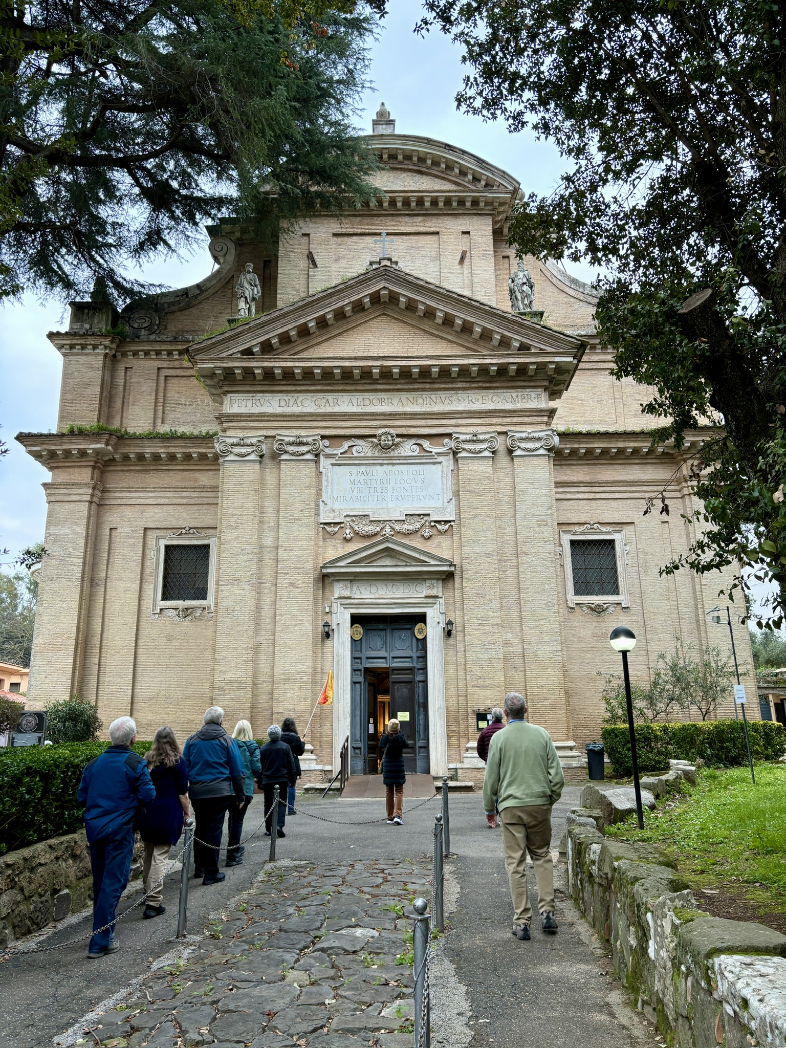 Next, we hopped the bus for a short ride to visit a site I wasn’t aware of: the place where St. Paul was martyred. A church now stands in the middle of a quiet, park-like setting that once was home to one of Rome’s prisons. It is also home to a Trappist abbey, where they raise the lambs used to create the wool for the pallia given to metropolitan archbishops.