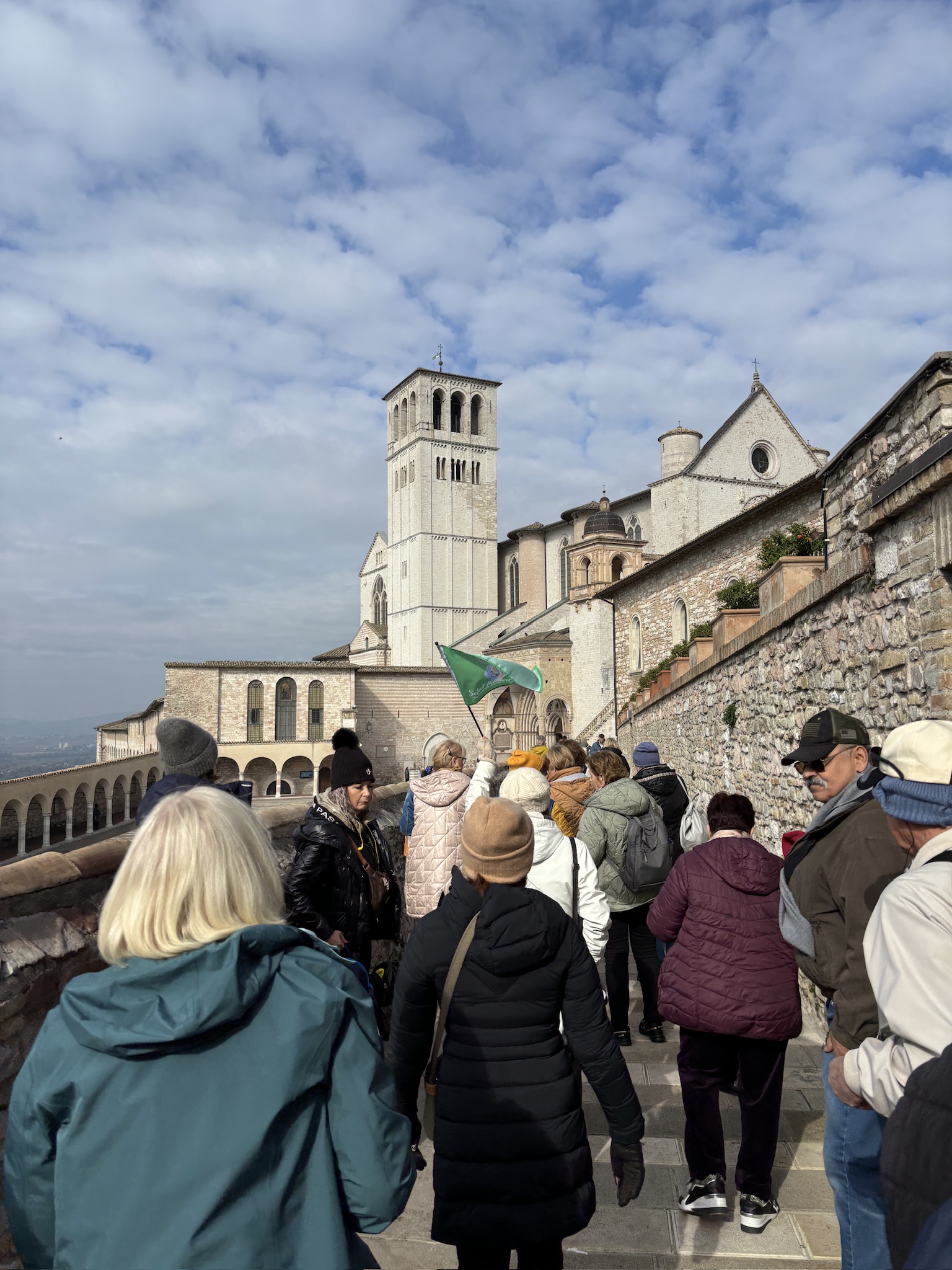 As we were getting ready to leave, a high school choir began to sing in another part of the church — and I thought, “Where have I heard that before?” and I suddenly realized what it was and felt tears welling up. It was “Adoremus te Christi,” from Dubois’s “Seven Last Words,” a favorite of my late pastor, Msgr. Joseph Funaro. We used to hear it every year during the Good Friday liturgy at my parish in Queens. A few moments later, the choir streamed out into the square in front of the church. The hills of Assisi were alive with the sound of music.