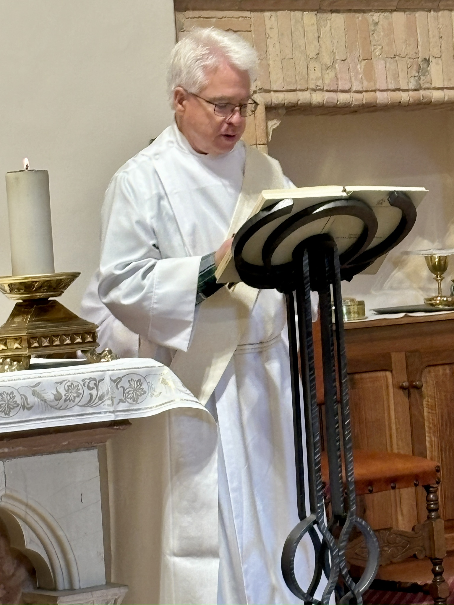 We celebrated Mass in a chapel of the basilica, near the cloister. Deacons Mike Friske and Mike Weaver assisted, and Clara Chu was our lector.