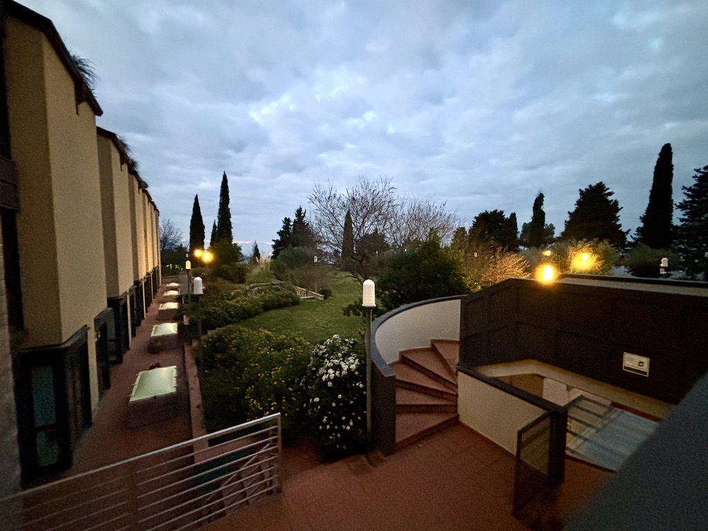 Weather in Italy this week has hovered in the mid-40s. This morning, it was 37 when I got up. It didn’t get much warmer. I took a brief walk around the hotel before breakfast.