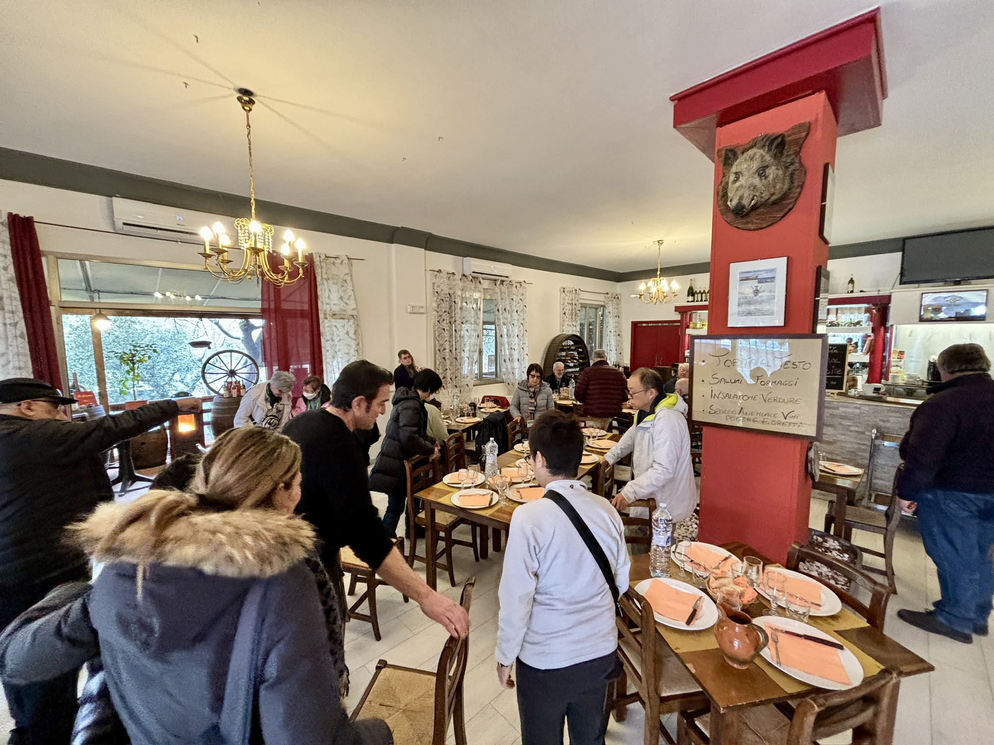 We boarded the bus and headed to a nearby restaurant, where we were treated to pasta and — I kid you not — boar. It was delicious.