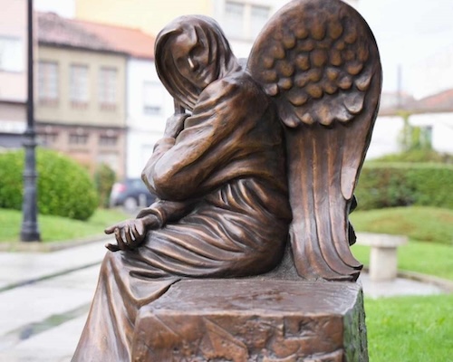 The Vatican’s Dicastery for the Service of Charity said on Tuesday: “This stranger turns into an angel when you look at the other side of the sculpture: the roughness of his clothes becomes smooth, the bag he carries turns into wings and the hood turns into hair.”