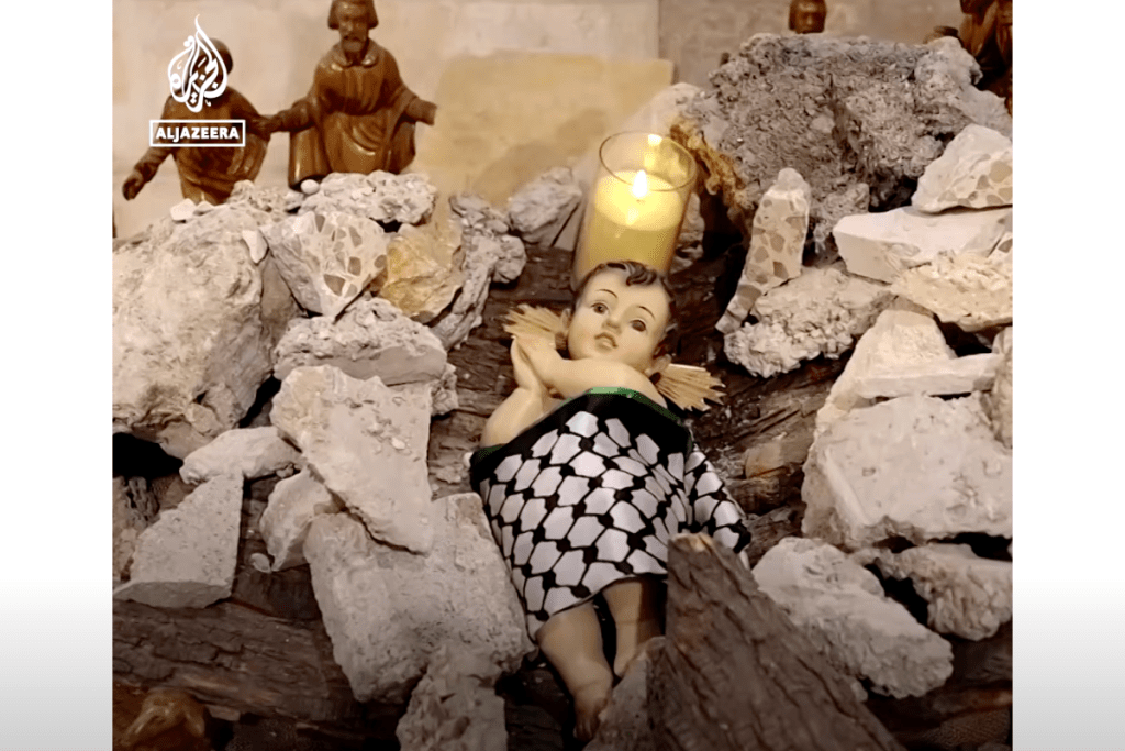 In perhaps the most overt display of how Israel’s war in Gaza has dampened Christmas celebrations in the city seen as the birthplace of Jesus, a Lutheran church put up its crèche, but with a sad and symbolic twist. The baby Jesus — wrapped in a keffiyeh, the black-and-white checkered scarf that has become a badge of Palestinian identity — is lying not in a makeshift cradle of hay and wood. Instead, he lies among the rubble of broken bricks, stones and tiles that represent so much of Gaza’s destruction.