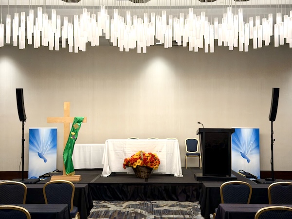 I loved the altar set up in the conference room where I gave my talks, and appreciated the “deacon cross” prominently displayed.