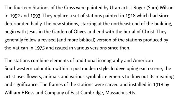 The dramatic Stations of the Cross are unique to the cathedral. From the cathedral website: